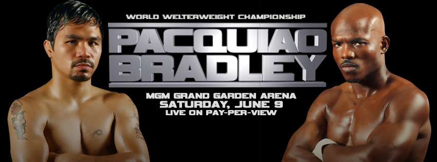 Manny Pacquiao vs. Timothy Bradley, is a Boxing Welterweight match on June 9, 2012 (June 10 here is Philippines), at the MGM Grand Garden Arena in Las Vegas, Nevada.